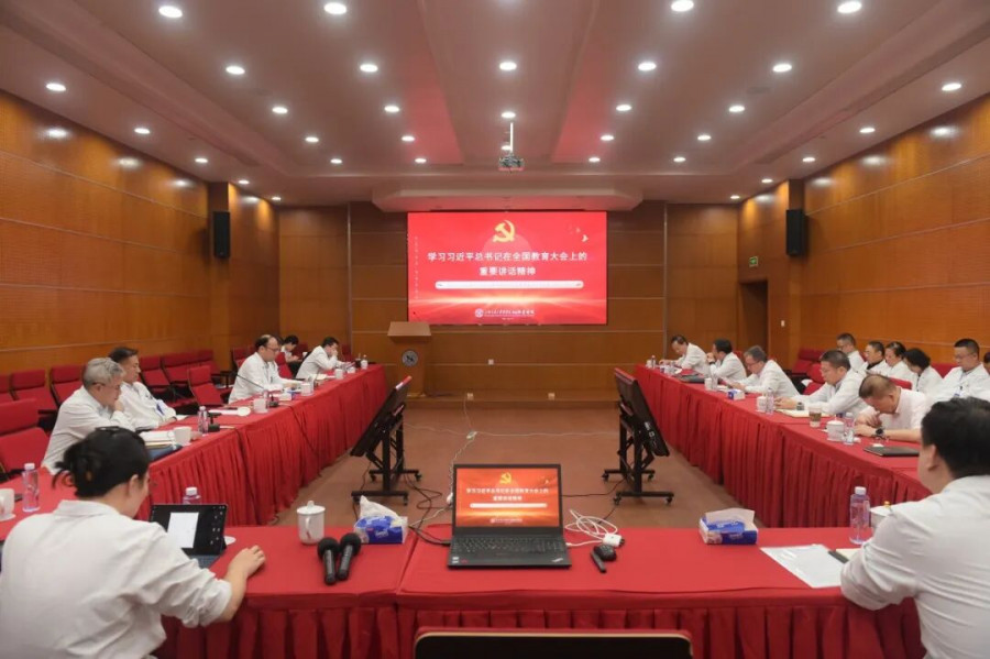 党委书记唐国瑶对习近平总书记在全国教育大会上的重要讲话精神进行领学传达,他指出,新时代以来,从2018年全国教育大会上提出的“建设教育强国”,到本次全国教育大会提出“建成教育强国”,一字之变,彰显务期必成的笃定信心;发出“朝着建成教育强国战略目标扎实迈进”的号召,坚定狠抓落实的坚决态度。