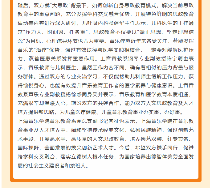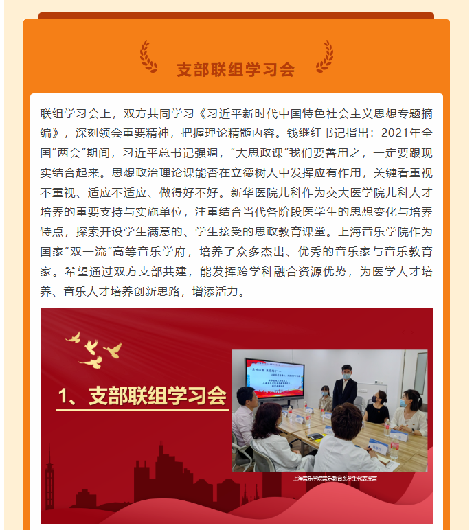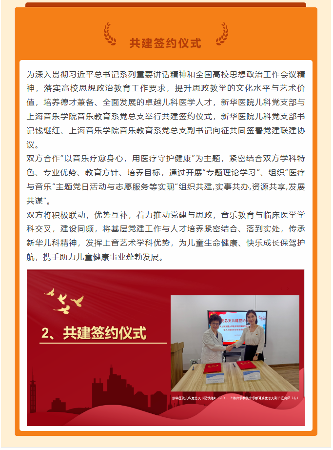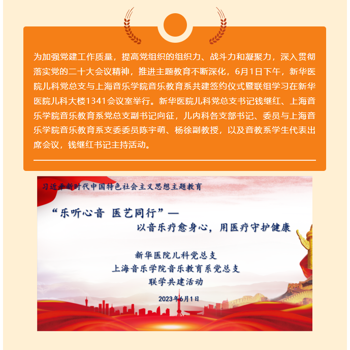 新华医院儿科党总支与上海音乐学院音乐教育系党总支联组学习暨共建签约活动顺利开展
