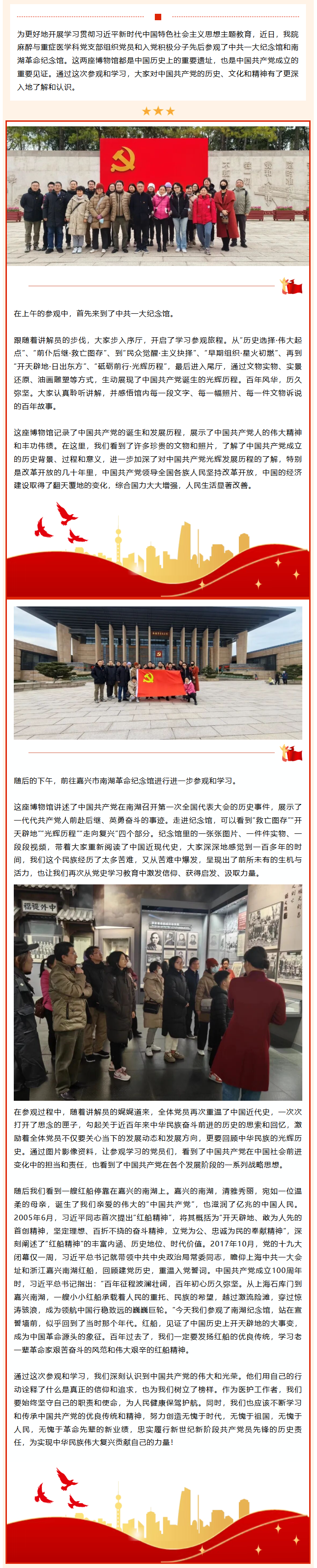 麻醉与重症医学科党支部开展 “重温初心之旅”主题党日活动